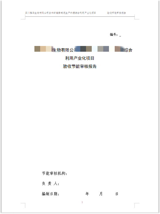 某生物公司綜合利用產(chǎn)業(yè)化項目驗收節(jié)能審核報告